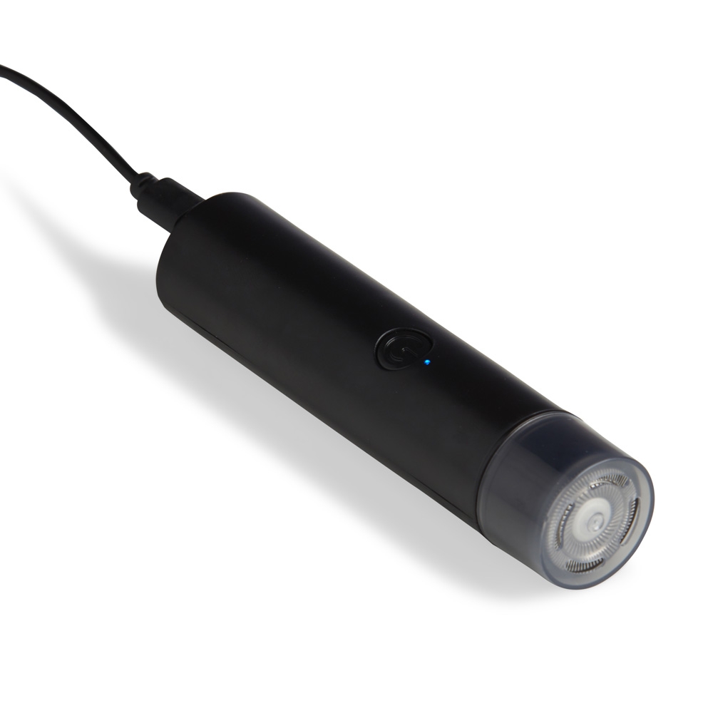 Aparador de Barba elétrico recarregável. Acompanha cabo USB Tipo-C e escovinha para limpeza.