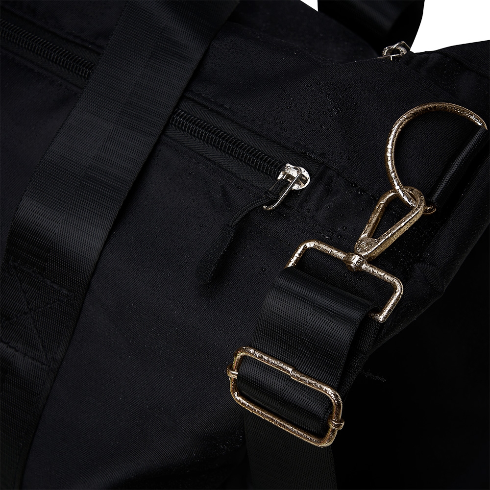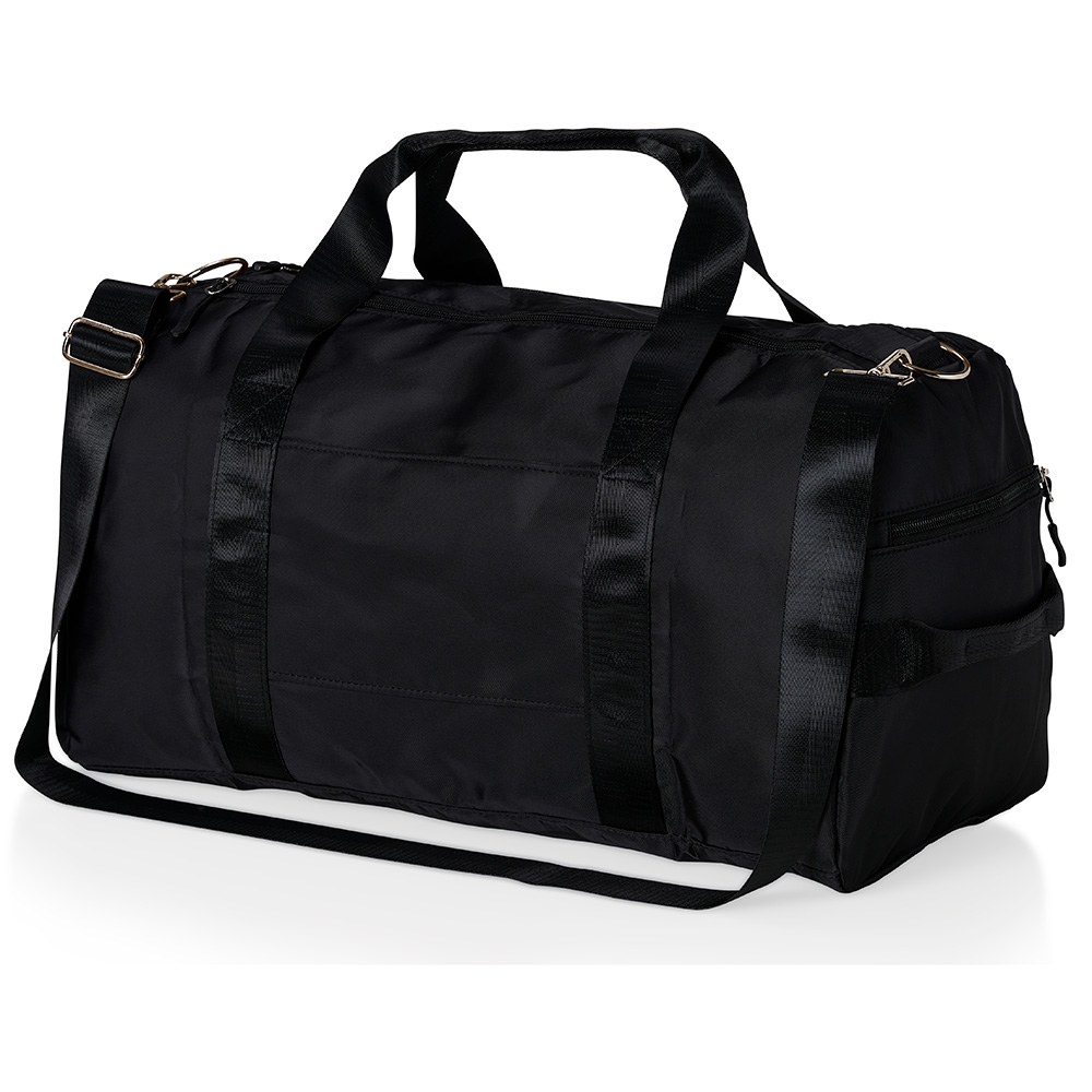 Bolsa esportiva de 35 litros em poliéster resistente à água com cinco compartimentos, sendo dois deles exclusivos para tênis e itens molhados. Contém bolso para encaixe em malas de viagem, bolso interno, alça de mão lateral extra e acompanha alça transversal.