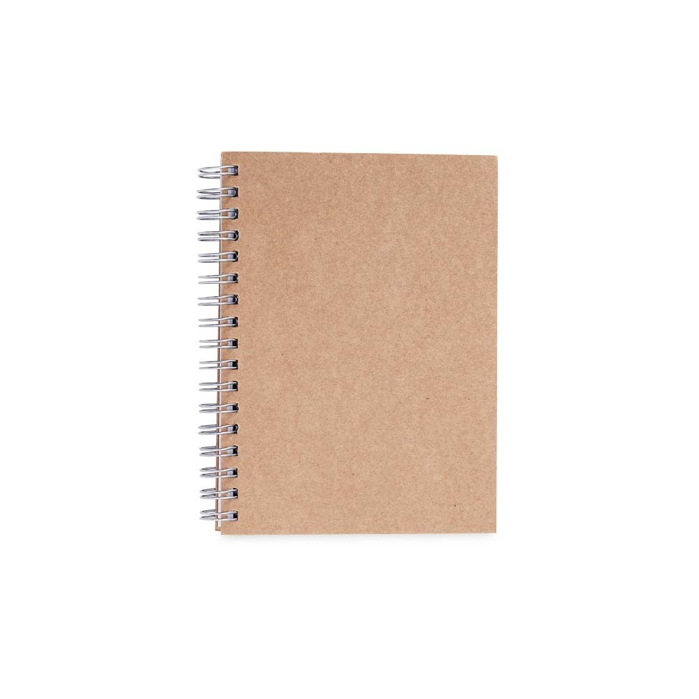 Caderno ecológico com wire-o. Contém aproximadamente 80 páginas pautadas na cor branca.