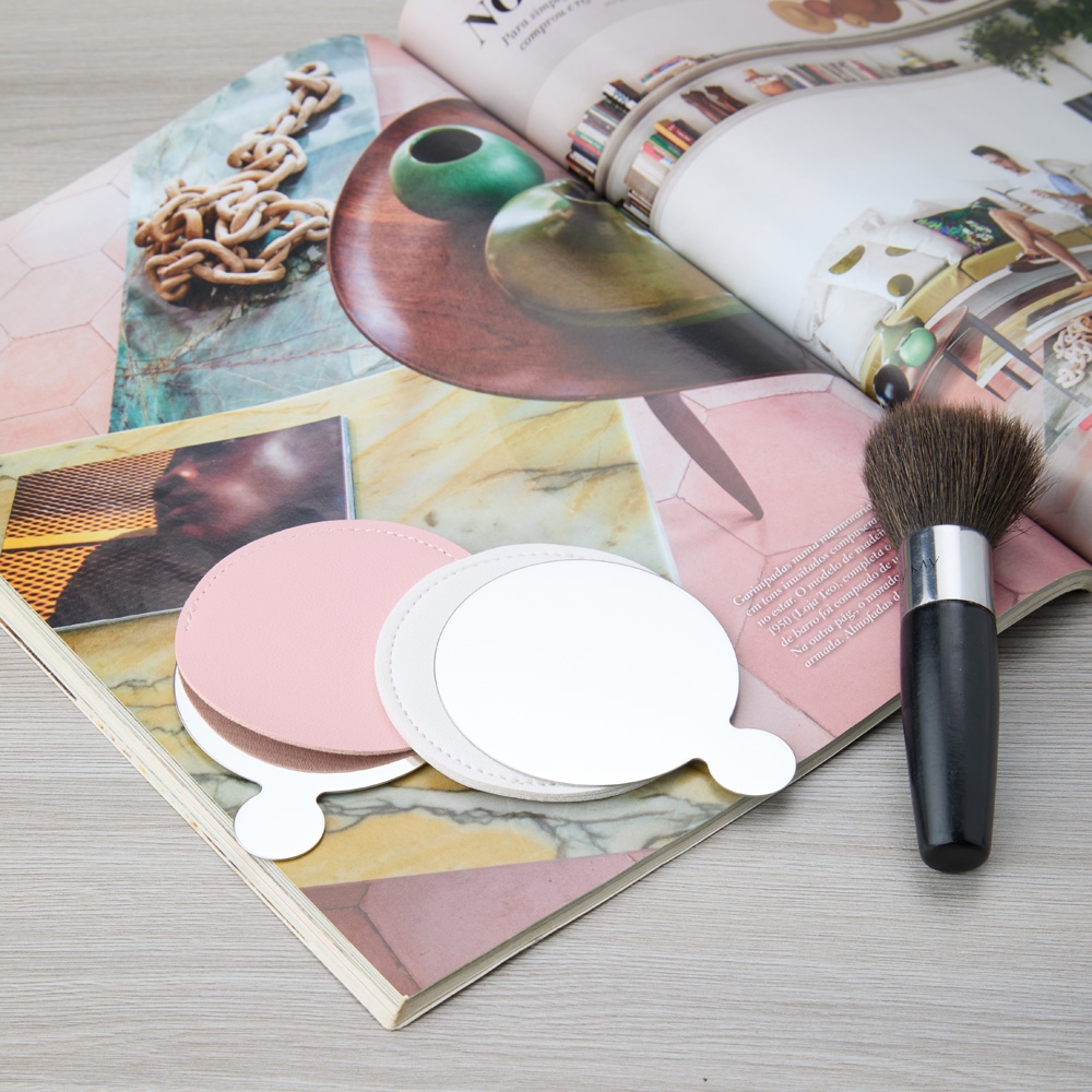 Espelho inquebrável de aço inoxidável com design ultrafino, resistência e durabilidade inigualáveis. Com acabamento polido altamente reflexivo e verso escovado, o espelho é acompanhado por uma capa em couro sintético para proteção e um toque de sofisticação ao produto.