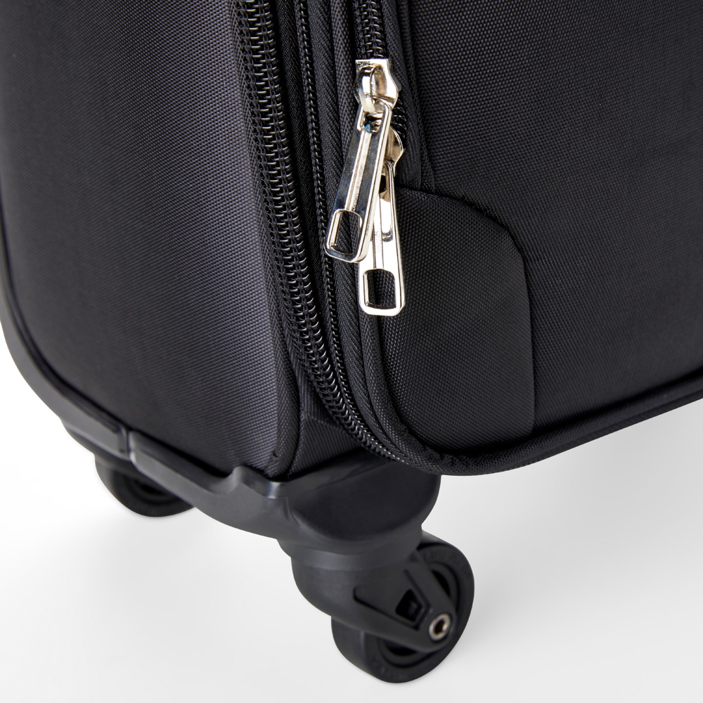 Mala de viagem 48 litros, confeccionada em poliéster de alta qualidade, com cadeado numérico TSA. Possui etiquetas de identificação embutidas na mala, sendo uma integrada ao cadeado e outra na parte de trás da mala, acoplada por estojo em couro sintético. Três compartimentos, bolso telado, cinta compressora para roupas, alça de mão em poliéster, puxador retrátil com regulagem de tamanho, zíper expansível e quatro rodinhas 360º.