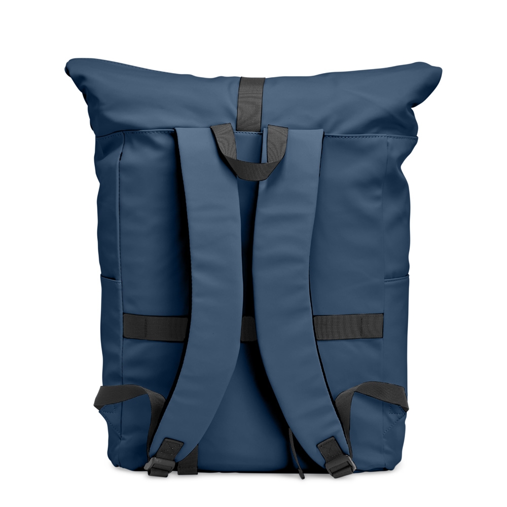 Mochila de couro sintético de 45 litros resistente à água. Possui dois compartimentos, sendo o principal com bolso para notebook de 15,6 polegadas, bolso interno com velcro, dois bolsos laterais, fechamento da mochila por zíper, cinto com velcro e engate para mala de viagem.