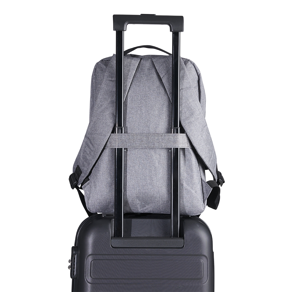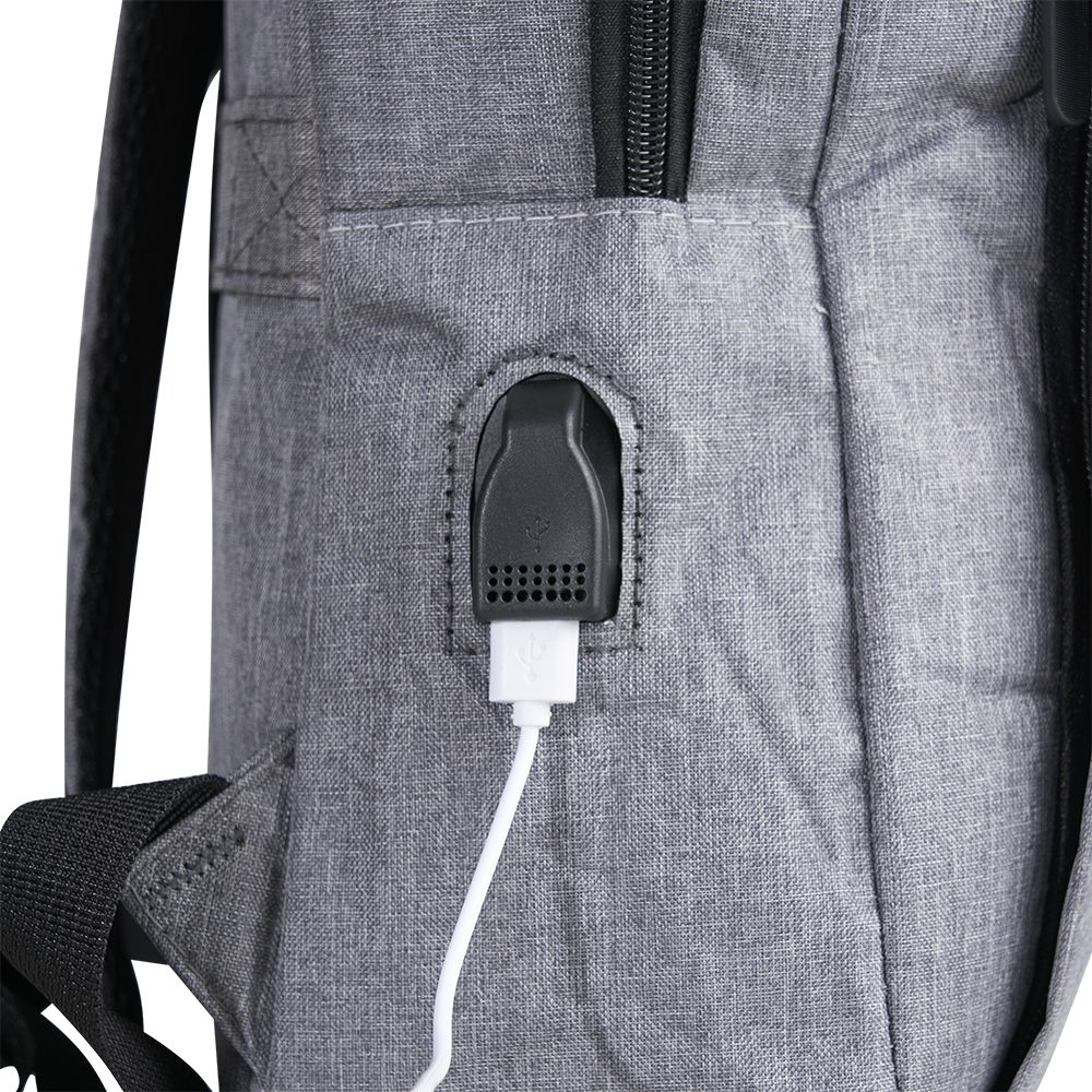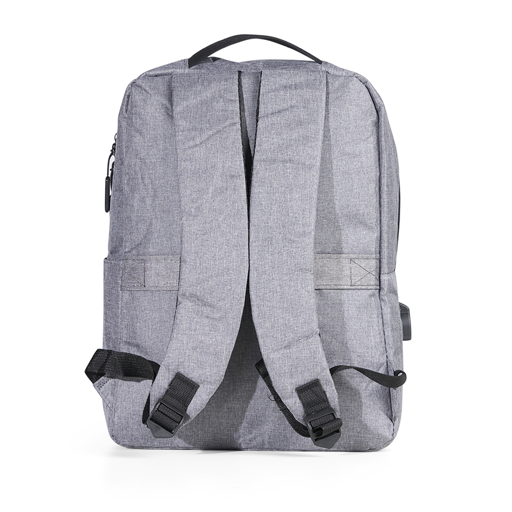 Mochila de nylon 21 litros com três compartimentos, sendo o principal com bolso para notebook 15,6. Com divisórias internas para acessórios, a mochila possui bolso lateral, suporte externo usb e alça para encaixe em malas de viagem.
