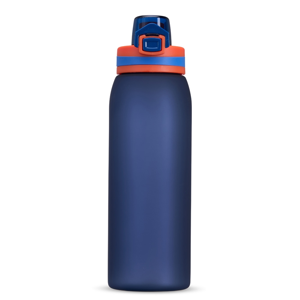 Squeeze plástico com capacidade de 900ml. Possui tampa rosqueável com tampa protetora para bocal, trava de segurança com botão de acionamento e alça para transporte. Pintura fosca.