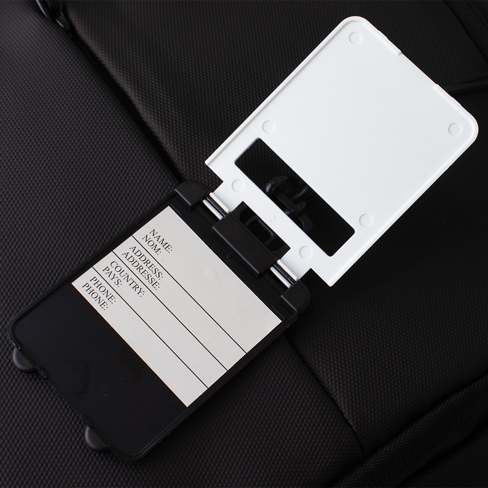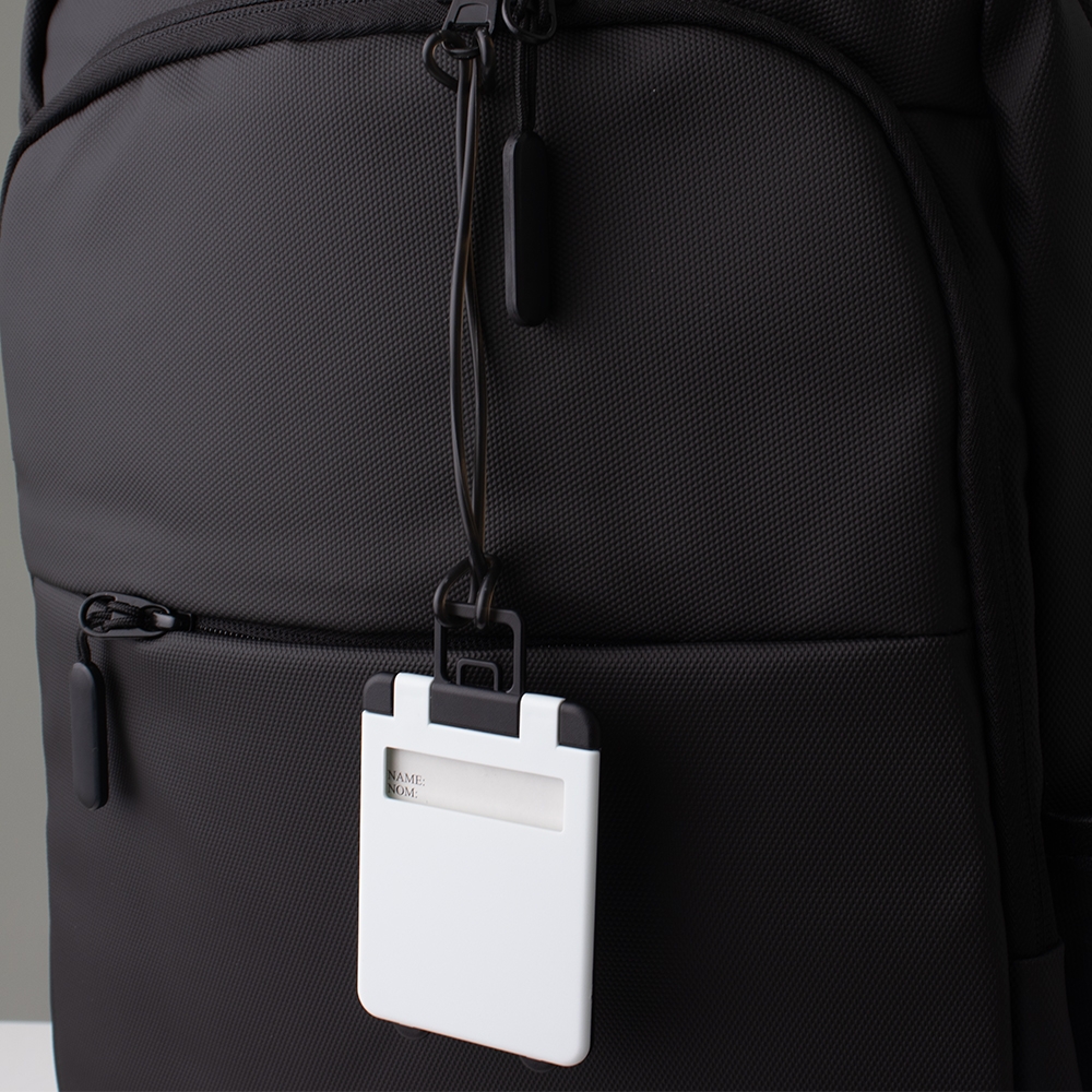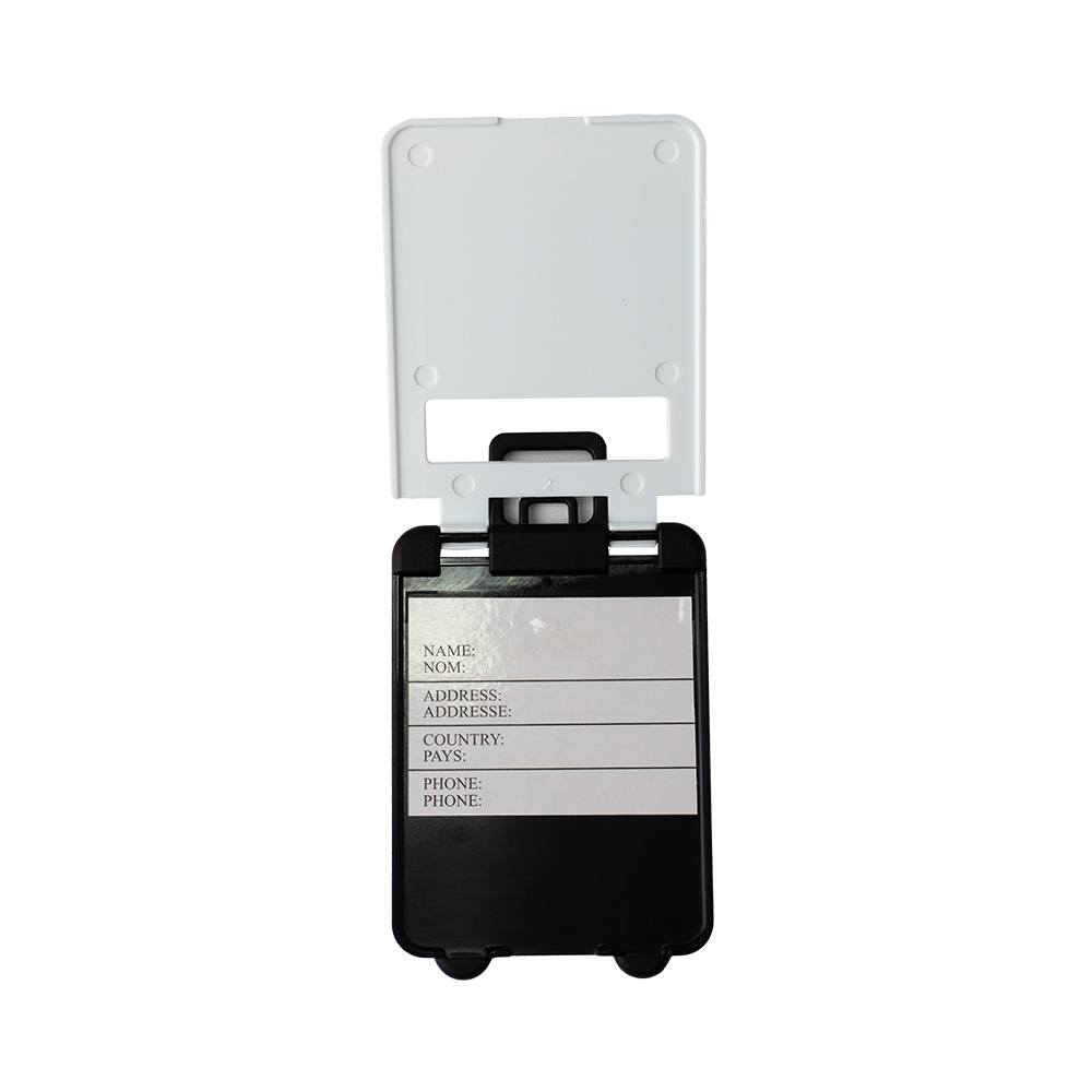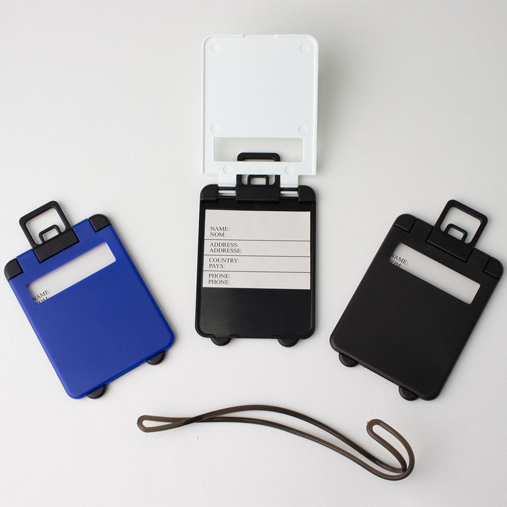 Tag identificador de bagagem em plástico. Acompanha cordão de silicone.