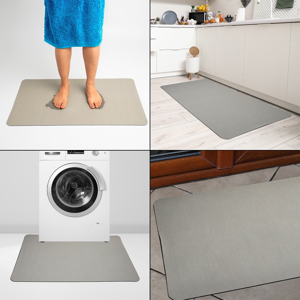 Secagem rápida e aderência antiderrapante! Nosso tapete ecológico é a solução ideal para acabar com o piso molhado, seja após o banho ou em outras áreas como cozinha, lavanderia e até mesmo entradas. Feito com lama de diatomáceas, ele absorve rapidamente a água e retorna ao seu estado natural em poucos minutos. Produzido com materiais naturais, o tapete oferece propriedades antibacterianas e antimofo, além de uma base antiderrapante que garante total segurança no uso.